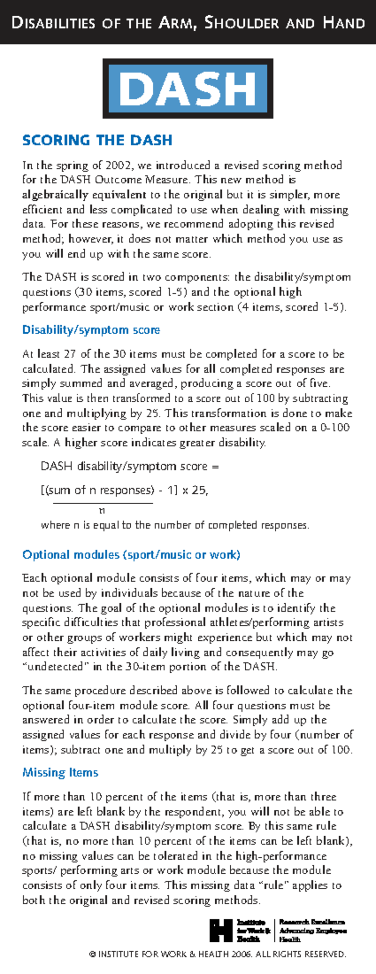 Revised Scoring Method for DASH Outcome Measure (DASH 2022) - Studocu