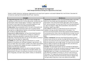 DAT 260 Module Two SWOT Analysis: Moving to the Cloud Template - Studocu