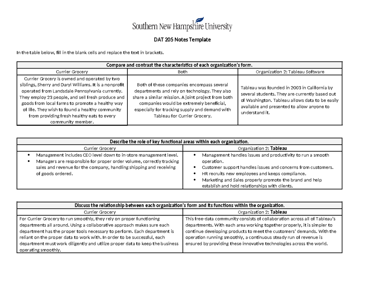 DAT 205 Week 3 Project: Characteristics of Organizations and Functions ...