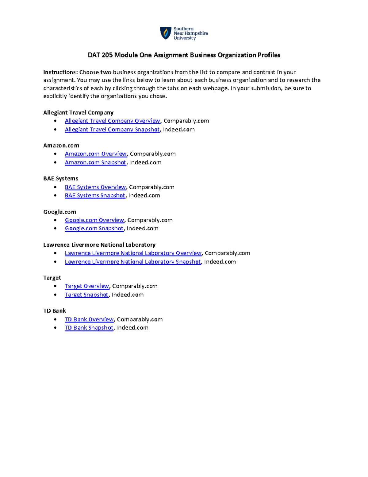DAT 205 Module One Assignment - You may use the links below to learn ...