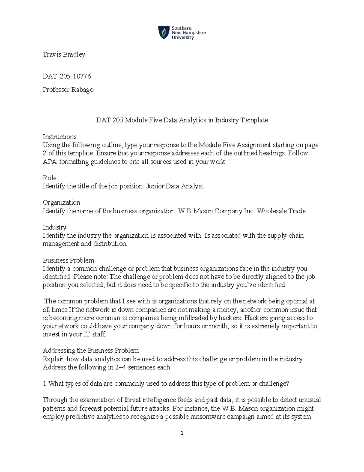 DAT 205 Module Five Data Analytics in Industry Template Completed ...
