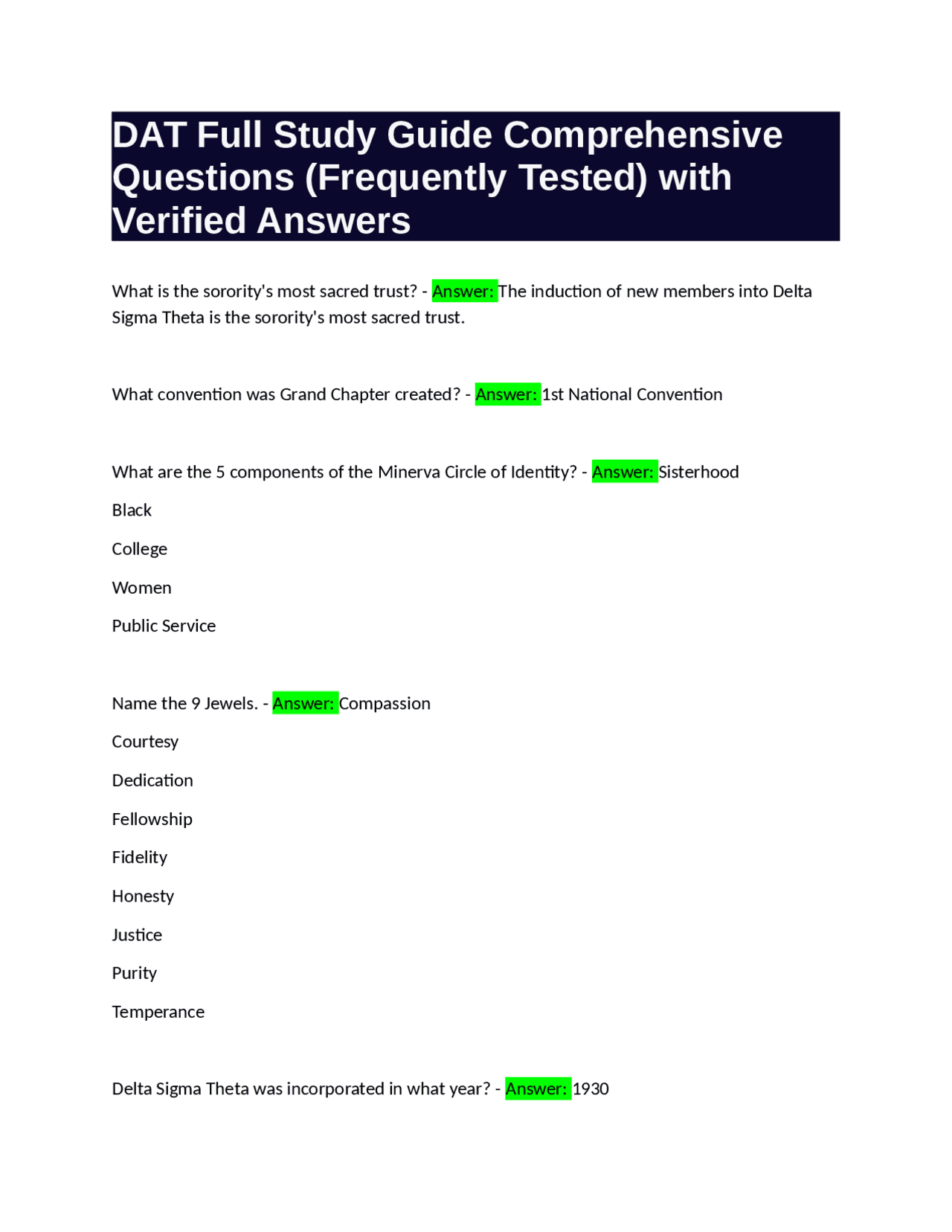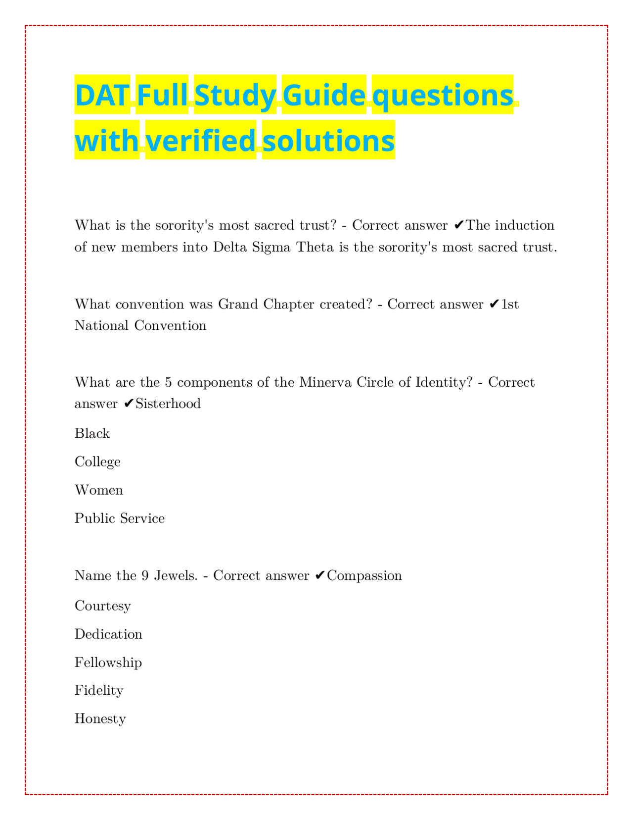 DAT Full Study Guide questions with verified solutions | Exams Nursing ...