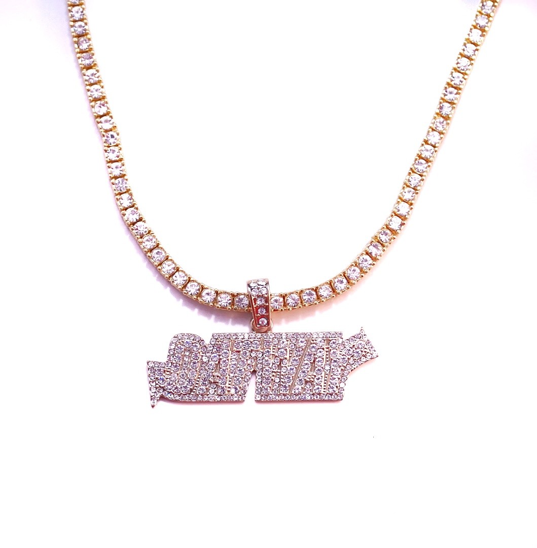 MIGOS QUAVO DATWAY PENDANT GOLD DIAMOND TENNIS CHAIN NECKLACE HIP HOP ...