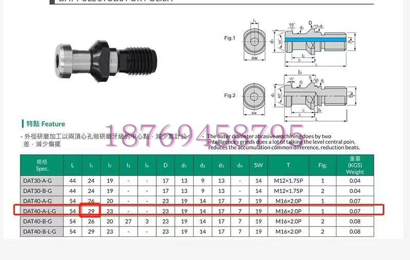 DAT40-A-L-G拉钉SK(JT)40外形 JIS633B 脖长29 23总长54牧野专用