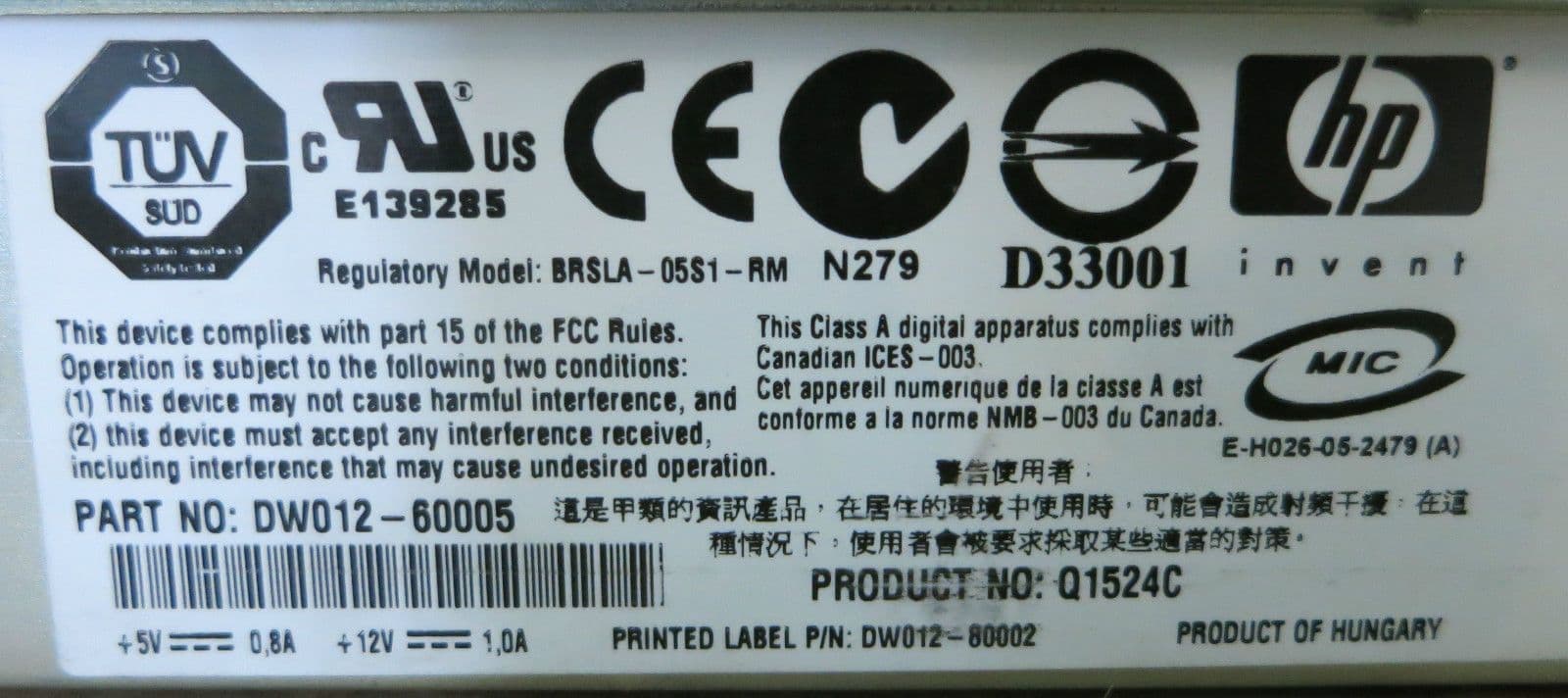 HP Tape Drive DAT 72 External DDS5 DAT72 C7438-00255 A3C40051907