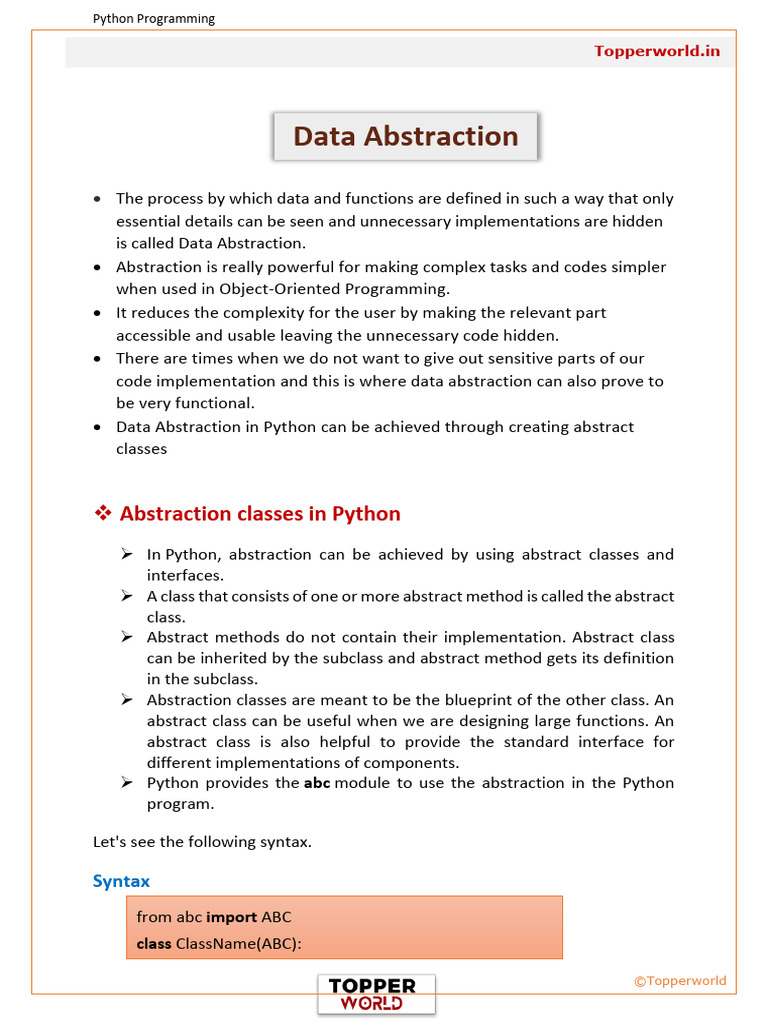 Abstraction In Python | Data Abstraction In Python | Object Oriented ...