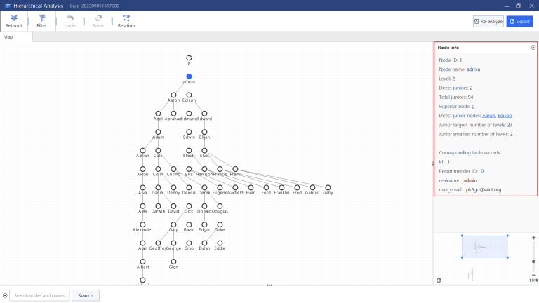 This visual depicts a simplified database analysis showing connections ...