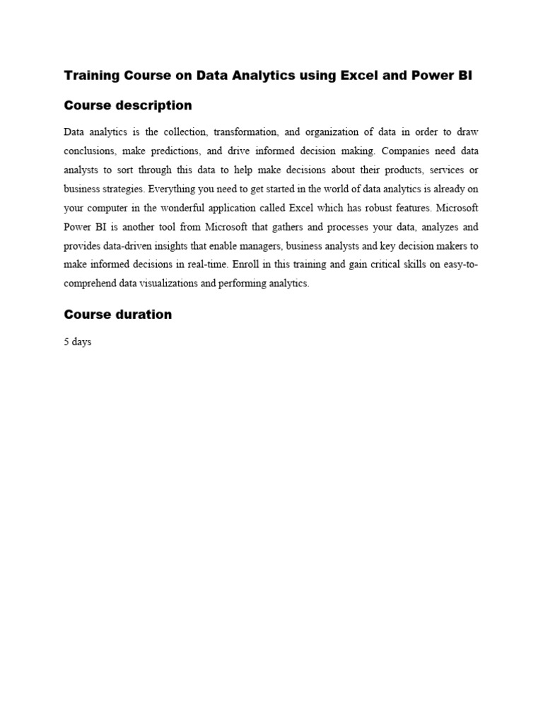 Training Course On Data Analytics Using Excel and Power BI | PDF