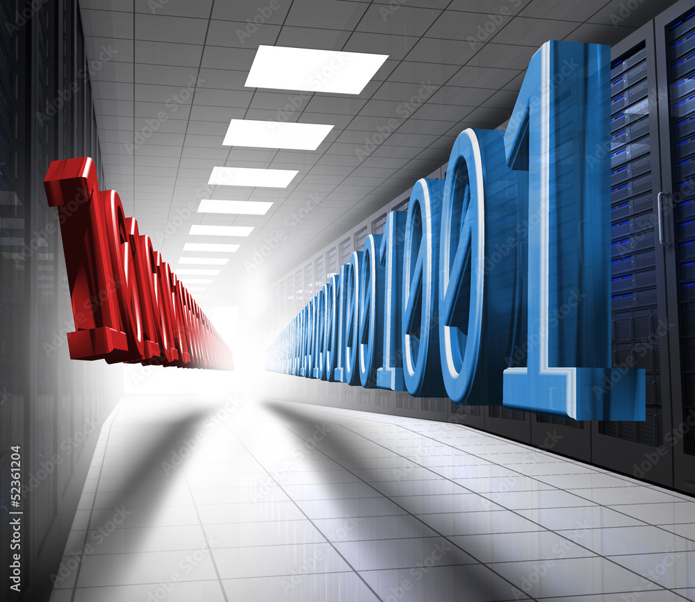 Blue and red binary code in data center Stock Illustration | Adobe Stock