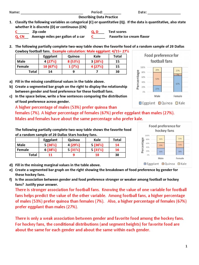 Statistics Homework Worksheet - 1.2 Data Classification | TPT