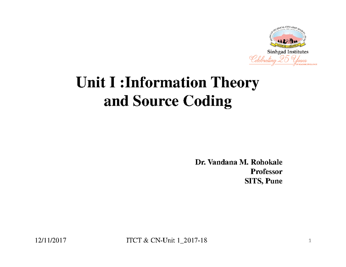 ITCT 1: Information Theory & Source Coding Notes - Studocu