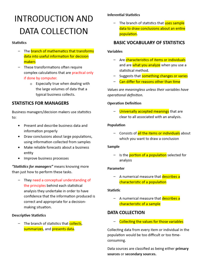 Data Collection - Summary Introduction to Statistics - Data Collection ...