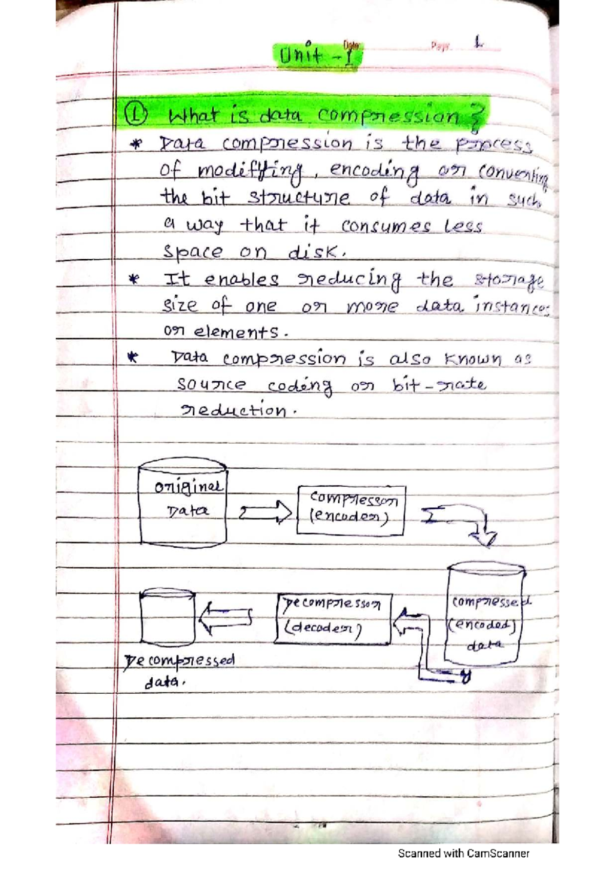 DC Unit-1 Notes: Compression Techniques and Data Encoding - Studocu