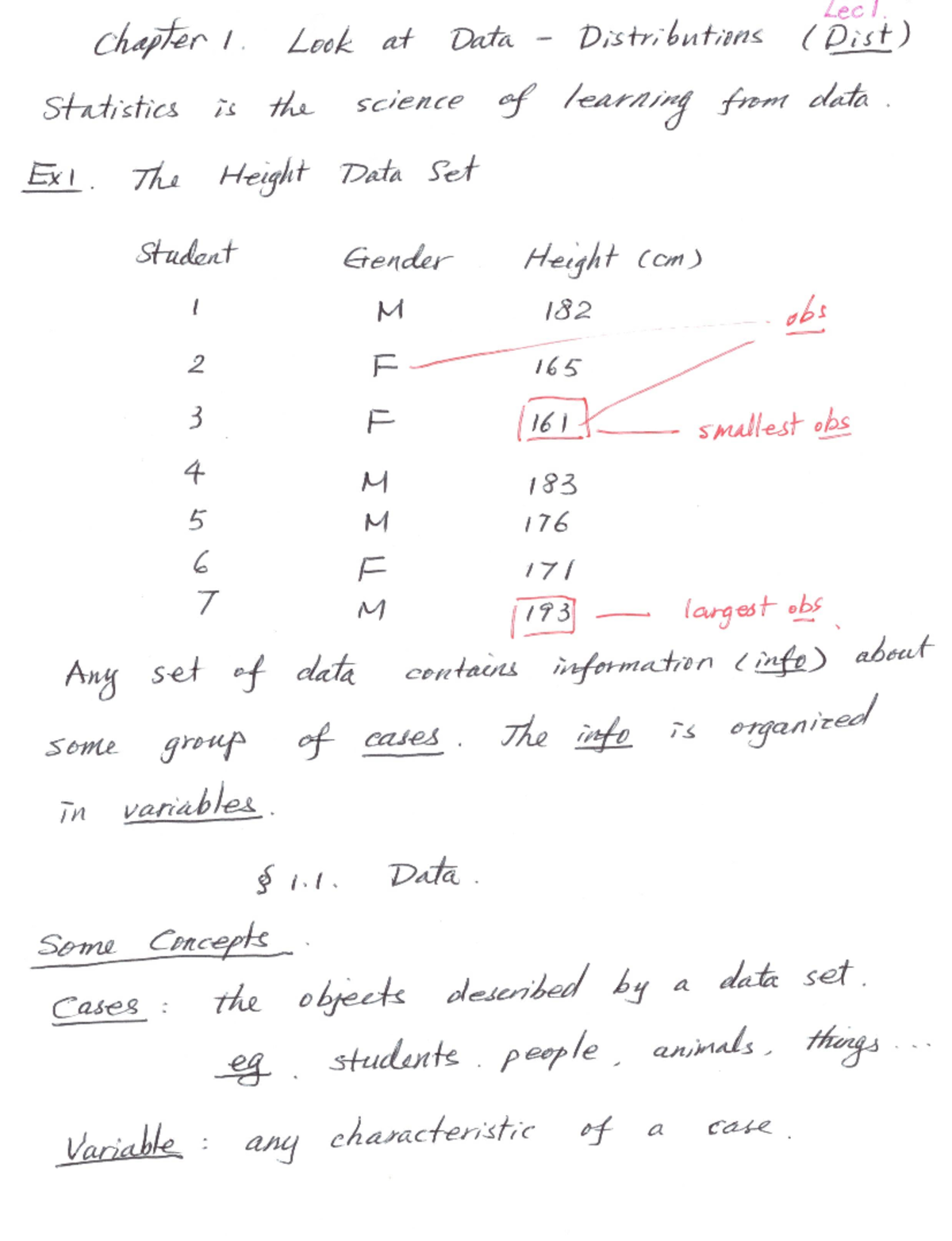 Note 1 - Chapter 1 - Lecl. chapter 1. Look at Data Distributions ( Dist ...