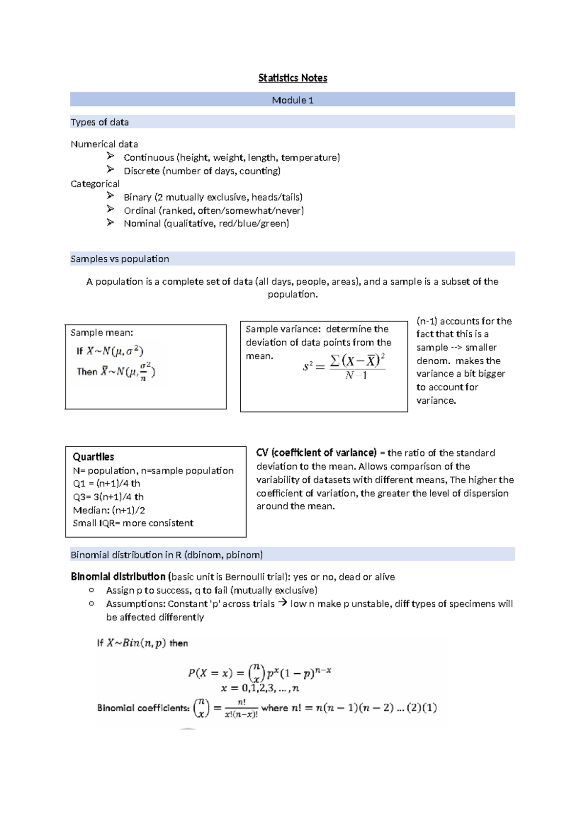 Unit 2 - Data & Sampling Distributions Lecture Notes - Studocu
