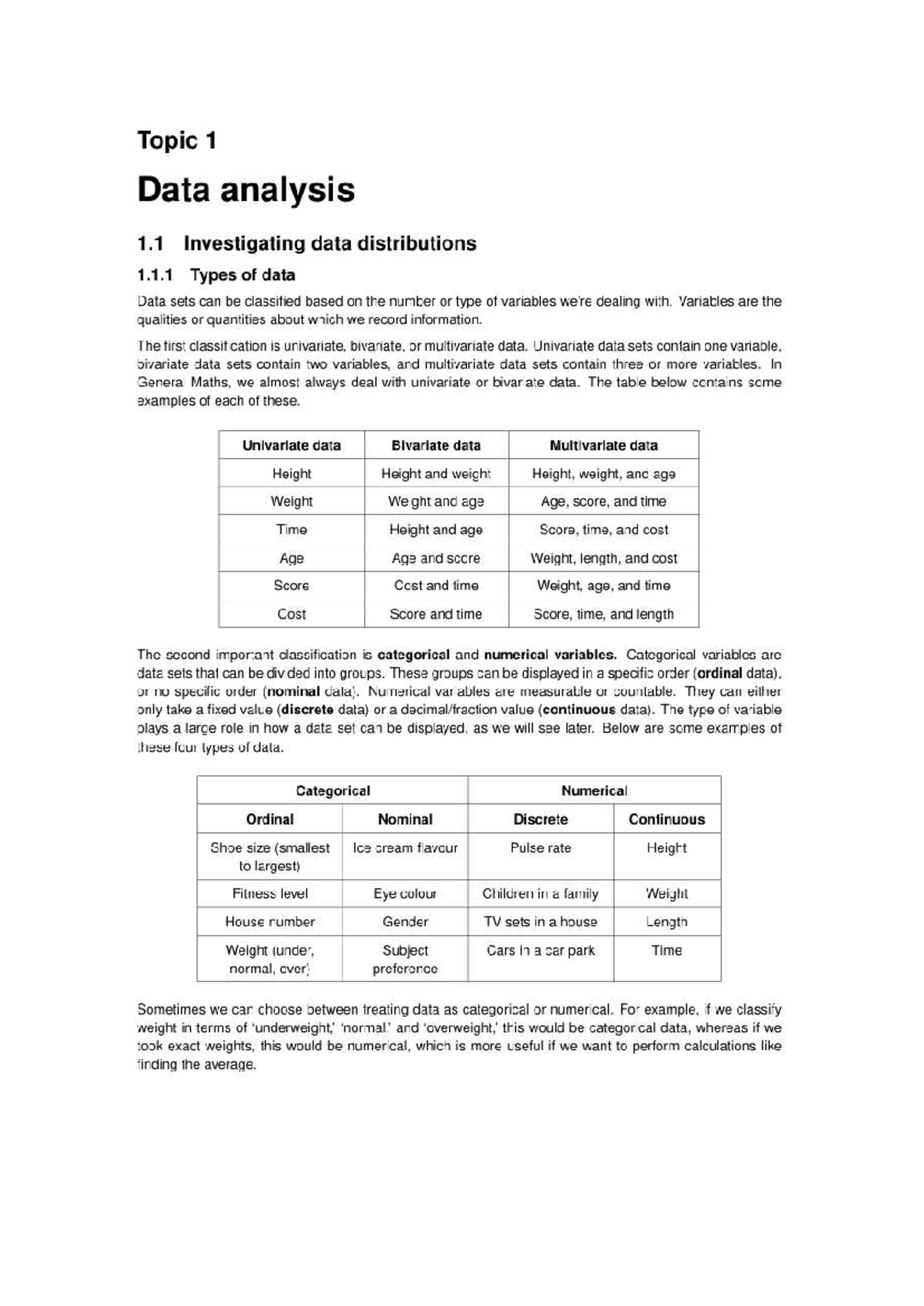 General Maths Notes: Topic 1 - Data Analysis and Distributions - Studocu