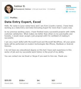 Data Entry Overview Sample & Example for Upwork - Webson Job