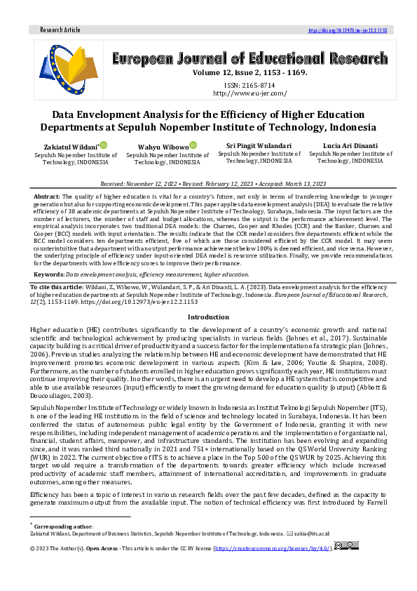 (PDF) Data Envelopment Analysis for the Efficiency of Higher Education ...