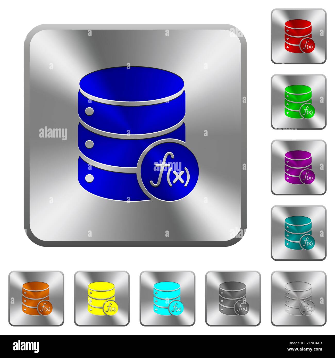 Database functions engraved icons on rounded square glossy steel ...