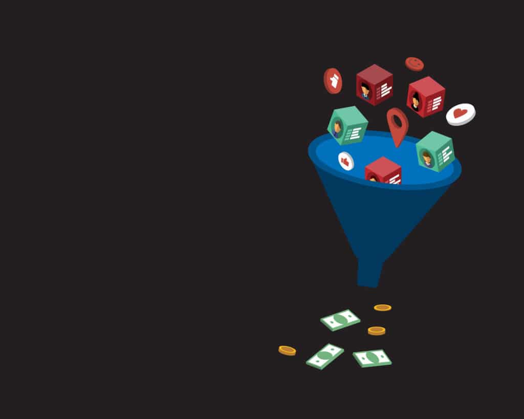 Data Monetization Concept With The Funnel And Businessman Data ...