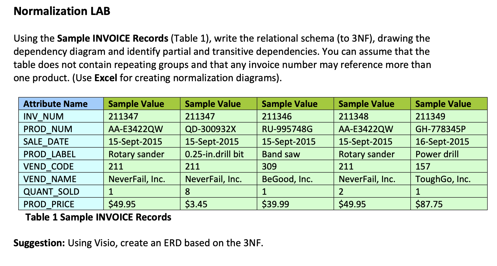 Solved Normalization LAB Using the Sample INVOICE Records | Chegg.com