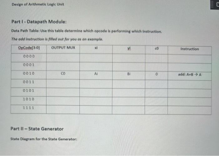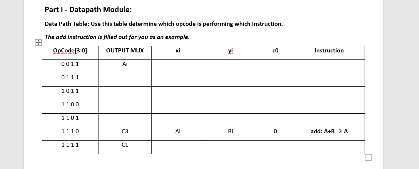 Solved Part I-Datapath Module: Data Path Table: Use this | Chegg.com
