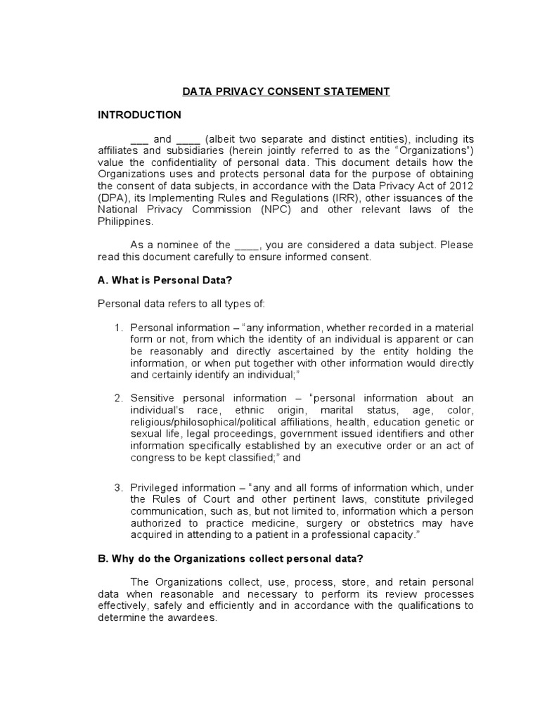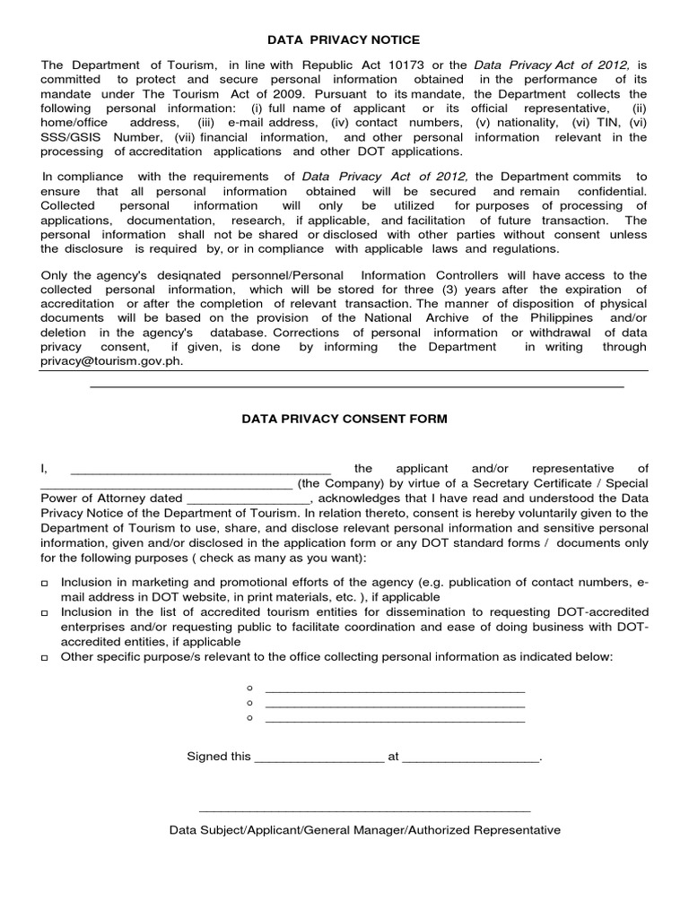 Data Privacy Notice and Consent Form | PDF | Information Privacy ...