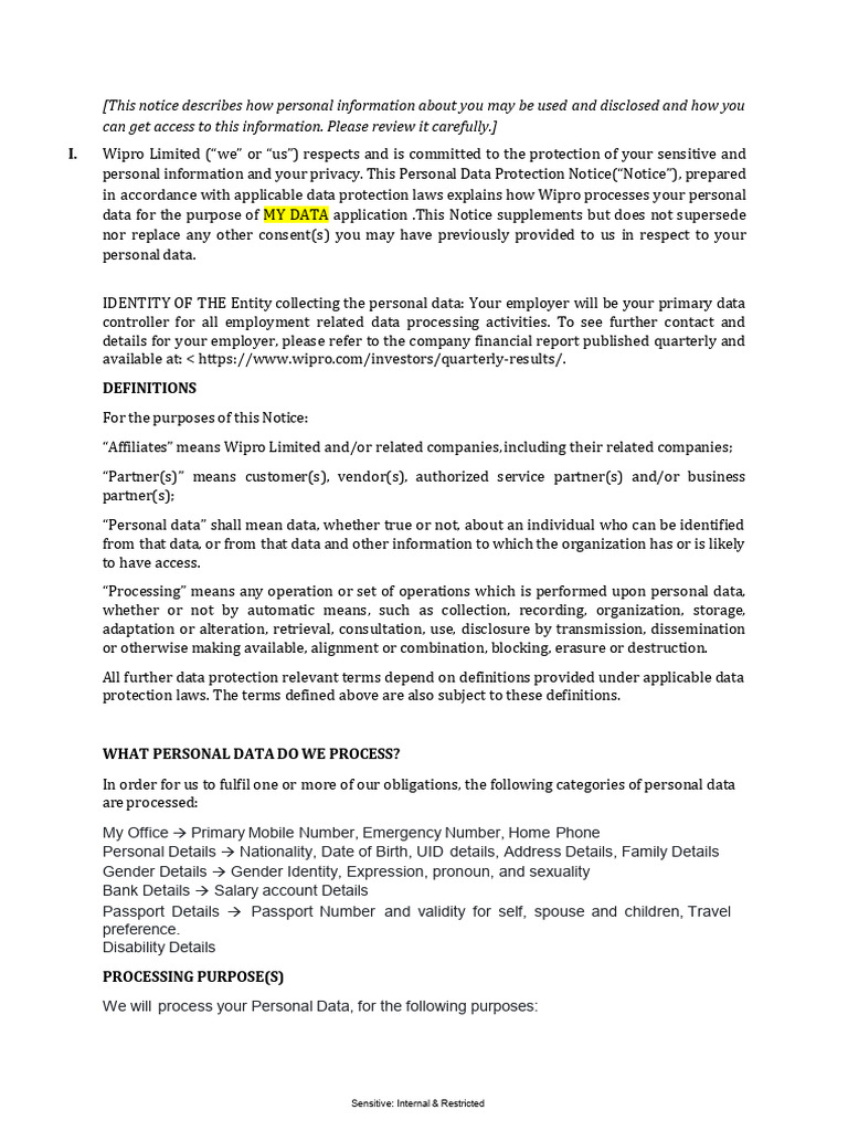 Wipro Personal Data Protection Notice | PDF | Privacy | Information Science