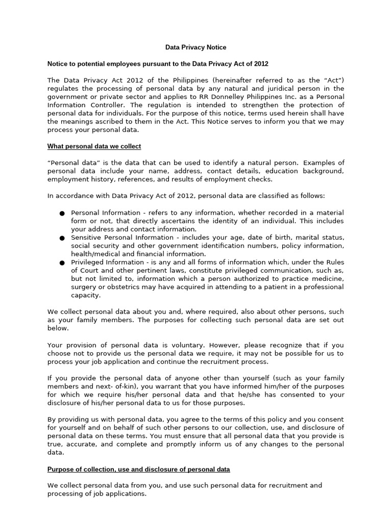 Data Privacy Notice With Consent Forms For Potential Employees | PDF ...
