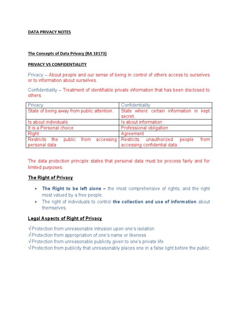 Data Privacy Notes | PDF | Privacy | Information Privacy