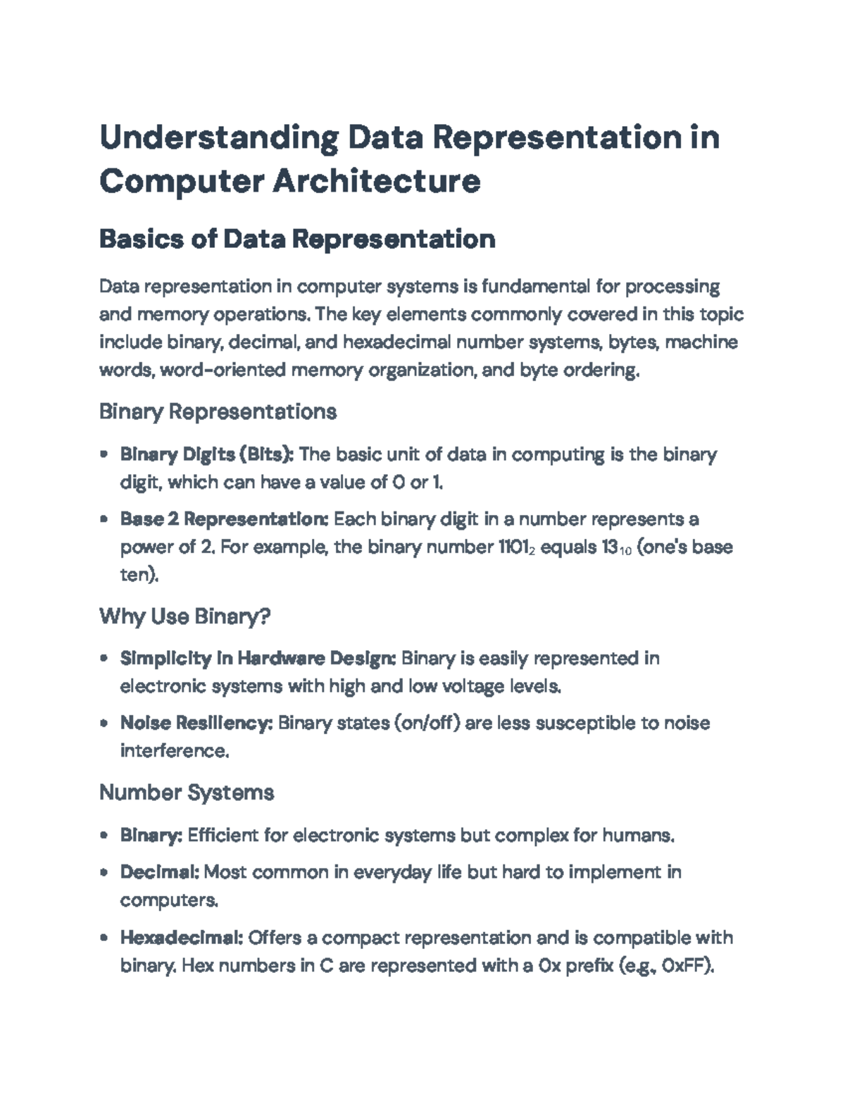 Understanding Data Representation & Computer Arithmetic | Course Hero