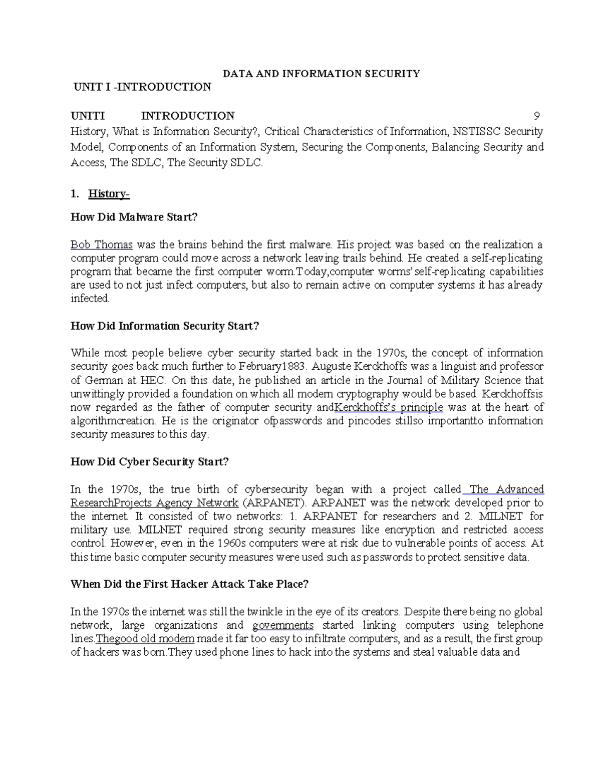 UNIT I: Introduction to Data and Information Security - Key Concepts ...