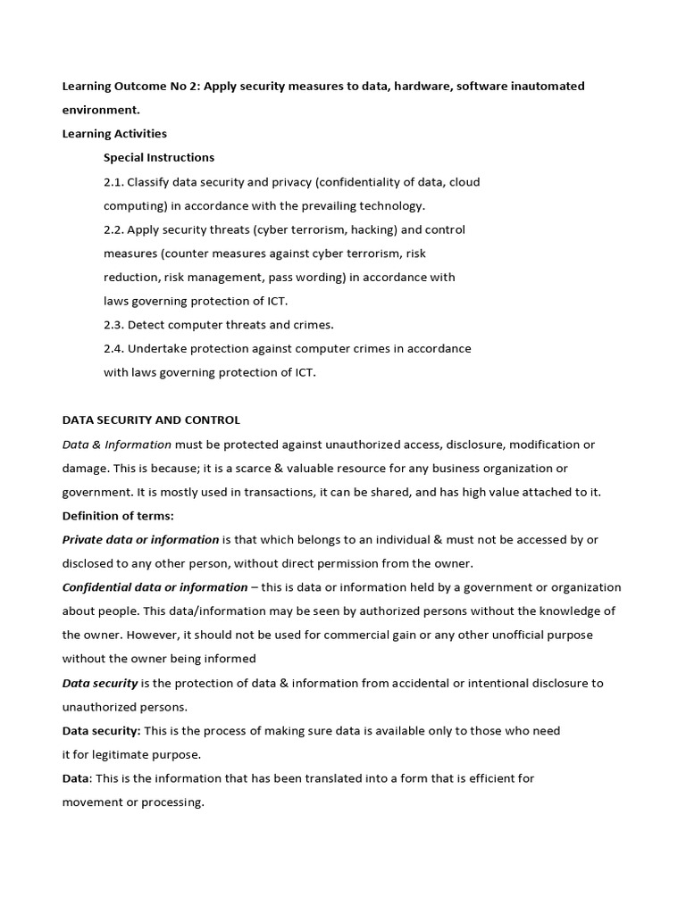 Lesson 8 COMPUTER AND DATA SECURITY Notes | PDF | Security | Computer ...