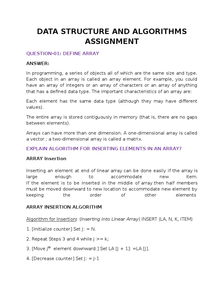 Data Structure and Algorithms Assignment | PDF | Data Structure | Array ...