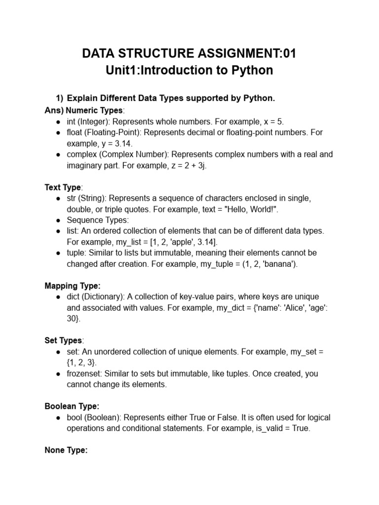 Introduction To Data Structure - Python Assignment | PDF