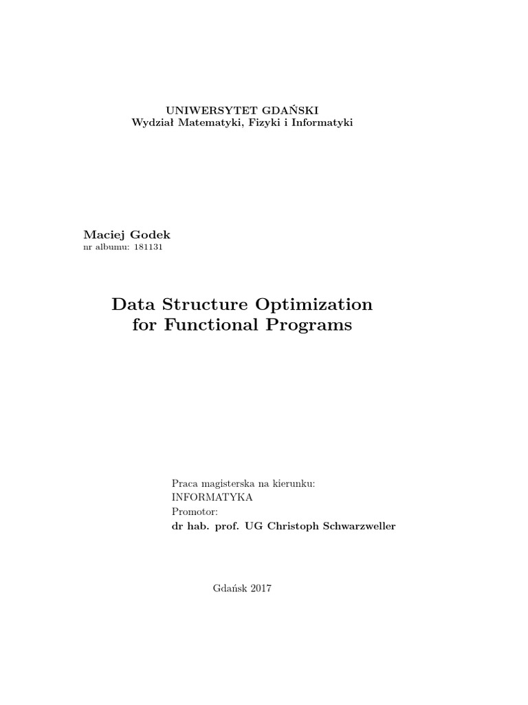 Data Structure Optimization For Functional Programs: Maciej Godek | PDF ...