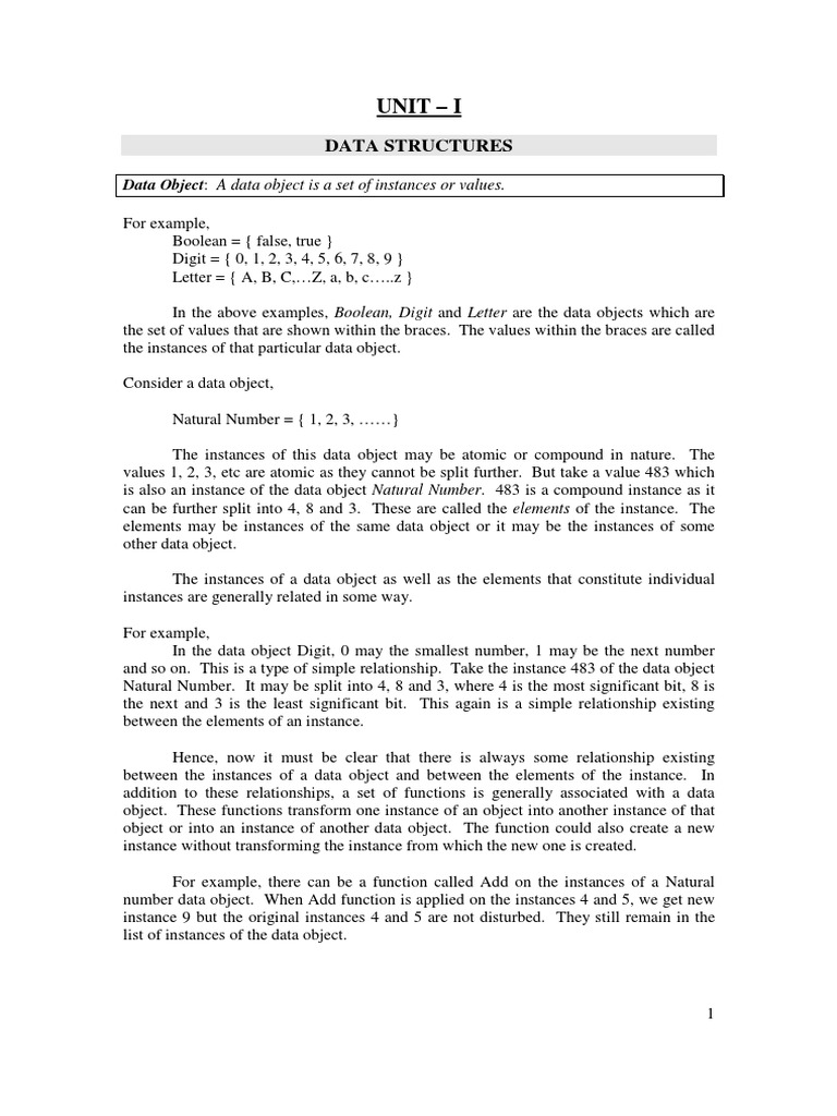 UNIT 1- Data structure | PDF | Computer Science | Algorithms And Data ...
