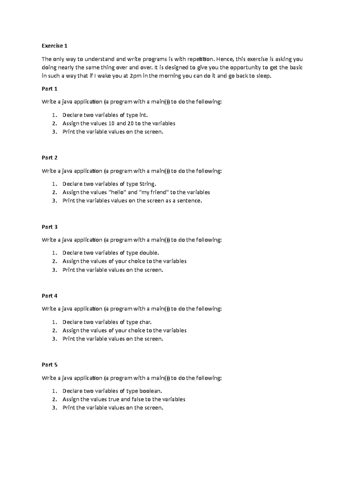 Java Data Types Exercises Basic Data Types Exercises - W3resource | PDF