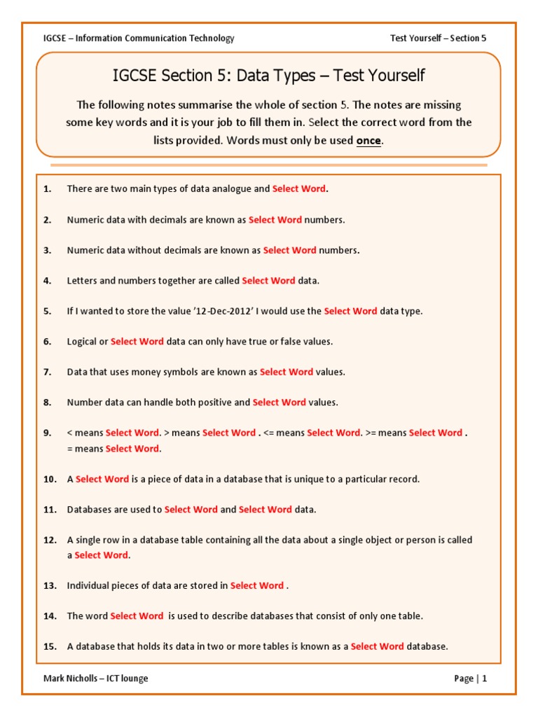 IGCSE ICT Data Types Quiz | PDF | Data Type | Data