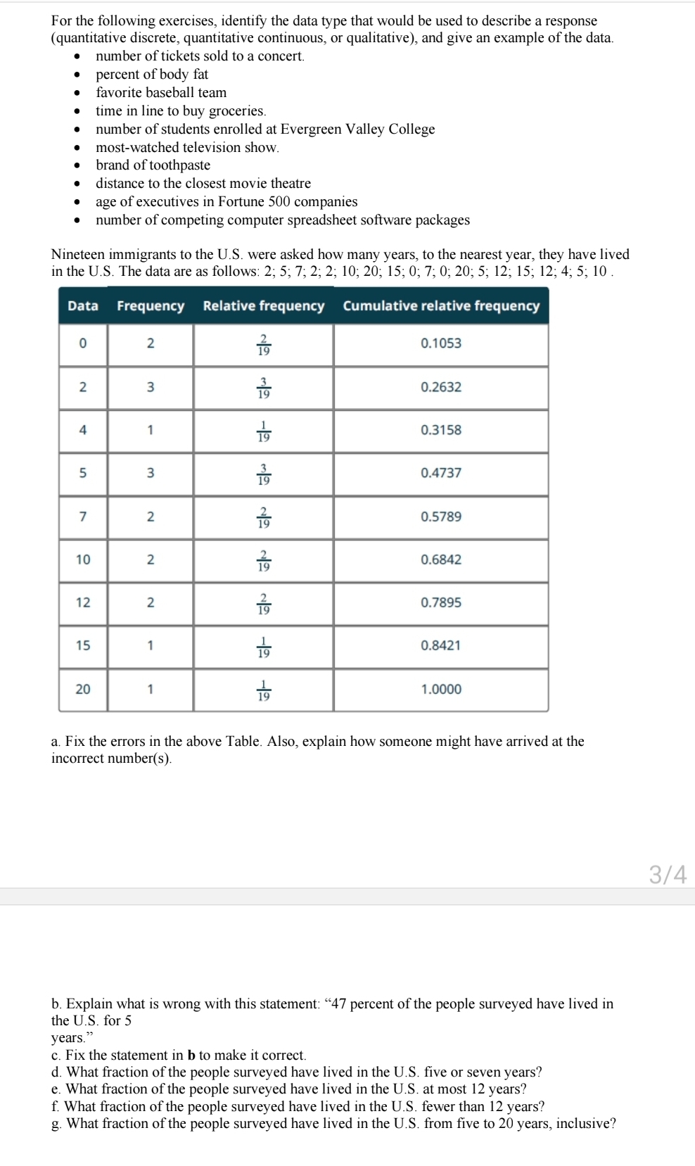 Solved For the following exercises, identify the data type | Chegg.com