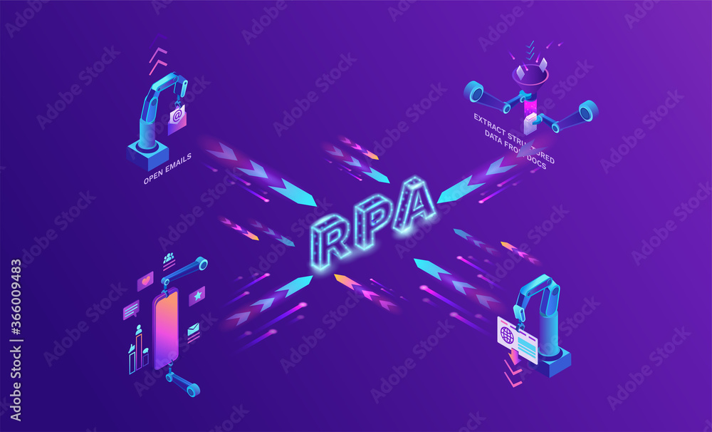 Robotic process automation or rpa isometric concept vector. Artificial ...