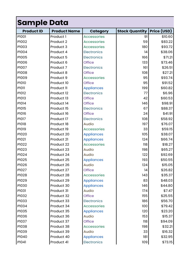 Sample Data - Organized Data | PDF