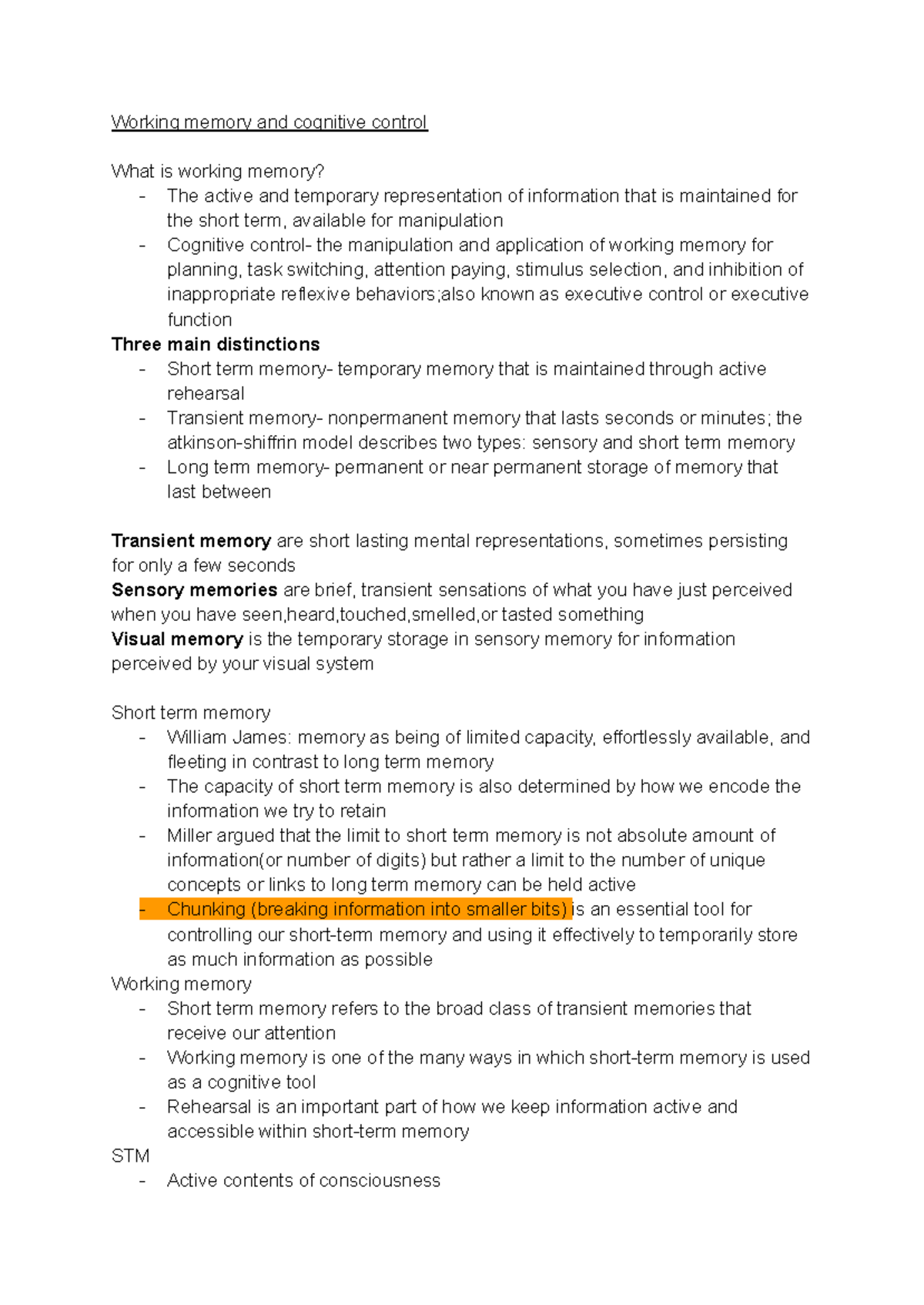 Working Memory and Cognitive Control Overview - Studocu