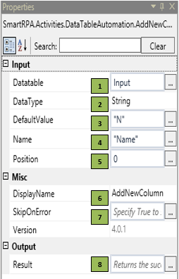 DataTable Automation - AddNewColumn | Robility Docs