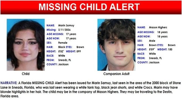 Florida missing child alert canceled: Missing Sneads teen located safe