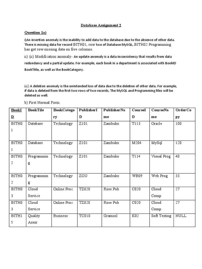 Database Assignment 2 | Assignments Database Management Systems (DBMS ...