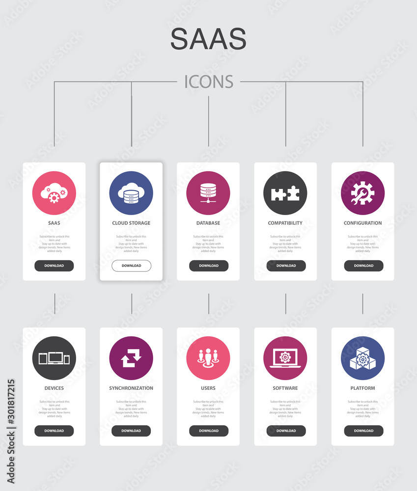 SaaS Infographic 10 steps UI design. cloud storage, configuration ...