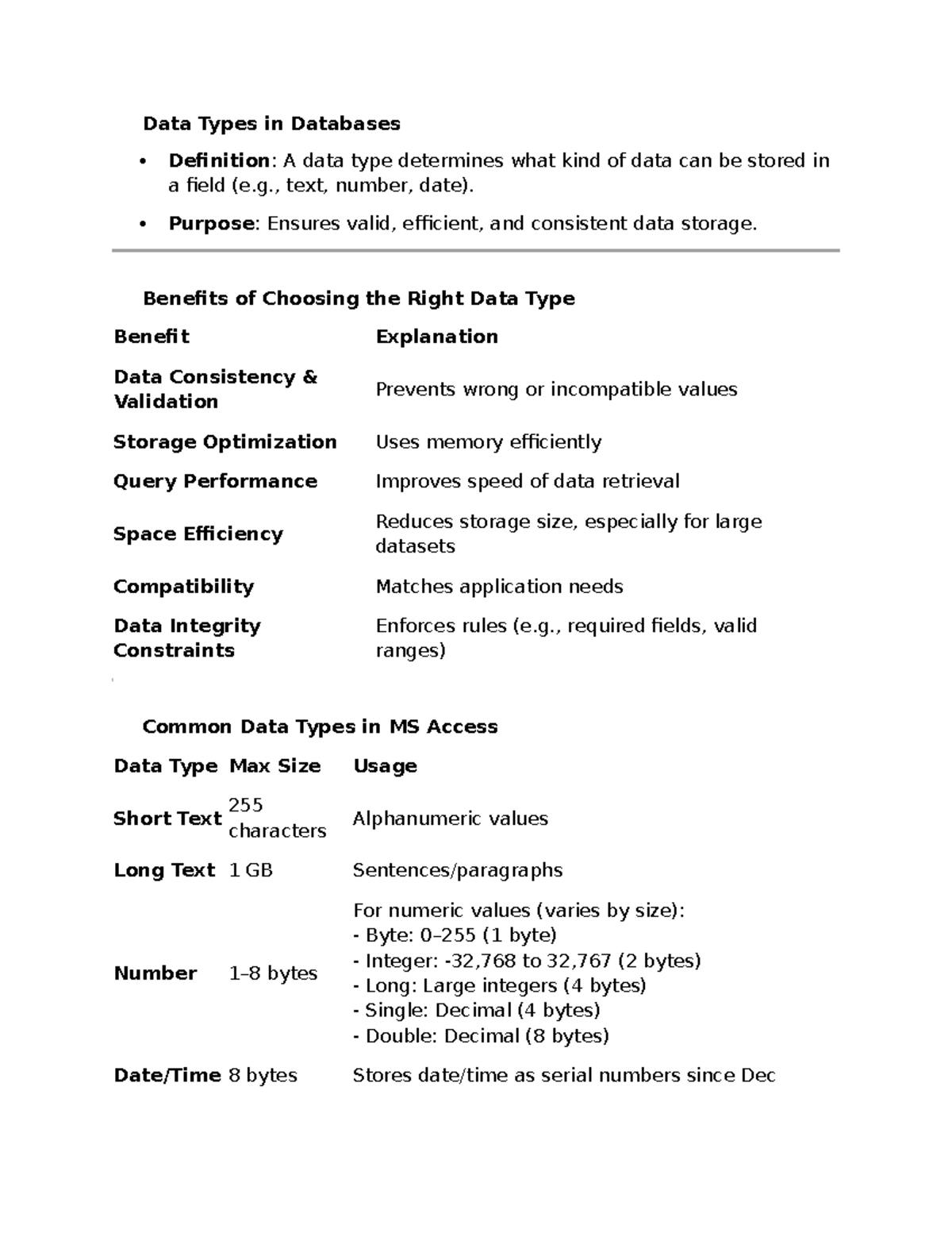 Data Types in Databases: Key Concepts and Benefits (DIS01) - Studocu