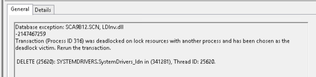 Database Exception: Transaction (Process ID 00) Was Deadlocked