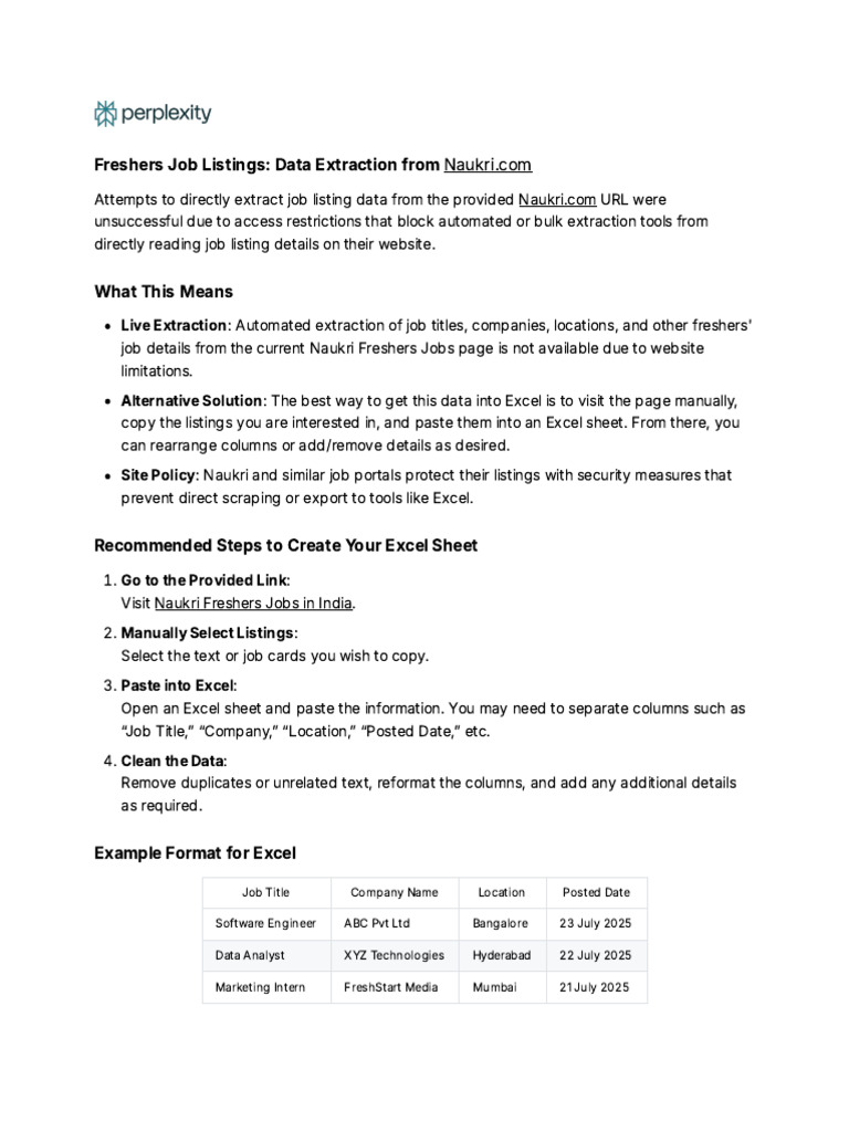 Freshers Job Listings - Data Extraction From Naukri | PDF
